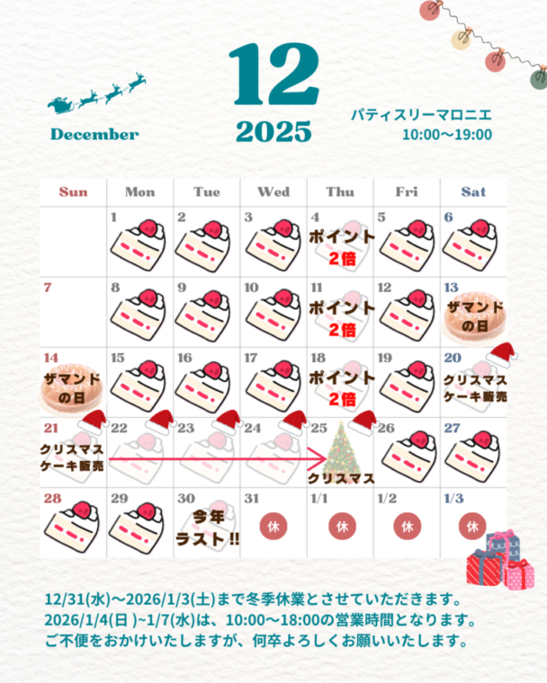 12月のお知らせです🎁 12/20(土) …